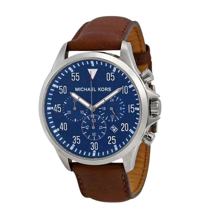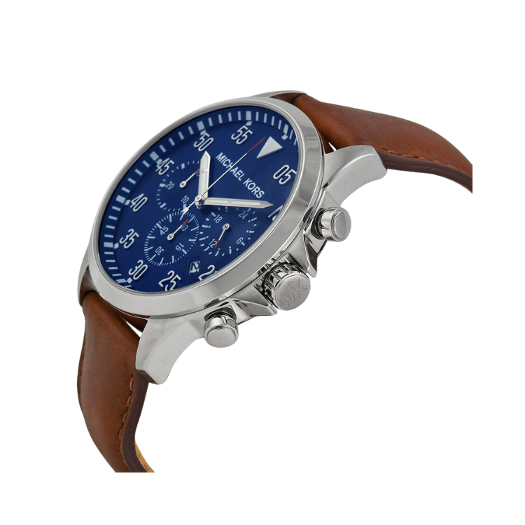 [READY STOCK] MICHAEL KORS GAGE CHRONOGRAPH BLUE DIAL SILVER CASE BROWN LEATHER MENS WATCH MK8362