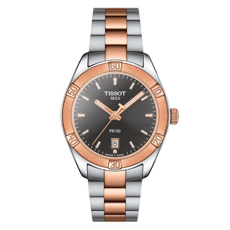 [PREORDER] TISSOT PR100 ANTHRACITE DIAL TWO TONE STEEL LADIES WATCH T101.910.22.061.00