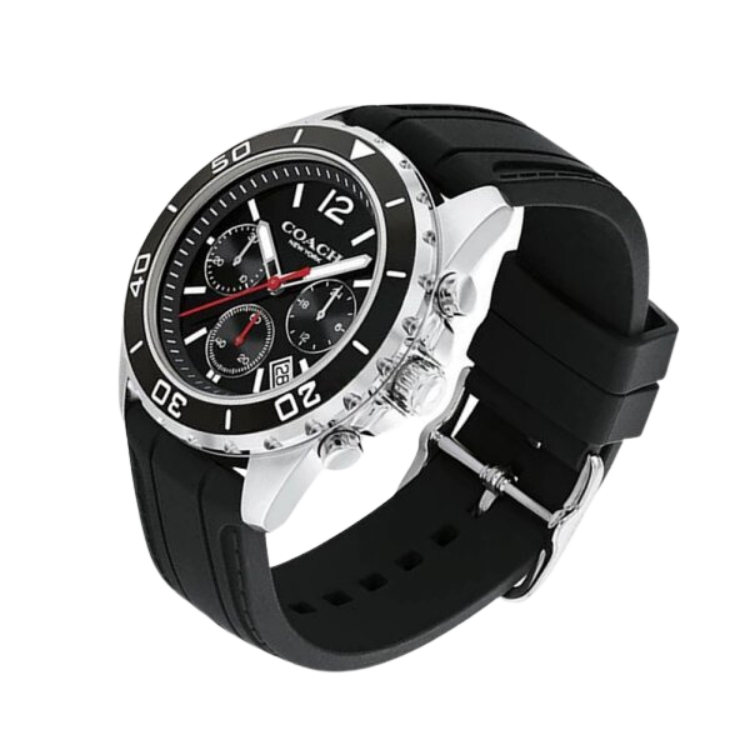 [PREORDER] COACH KENT CHRONOGRAPH BLACK DIAL SILVER CASE BLACK RUBBER MENS WATCH 14602565