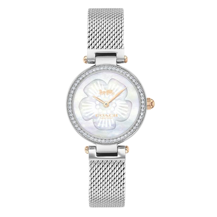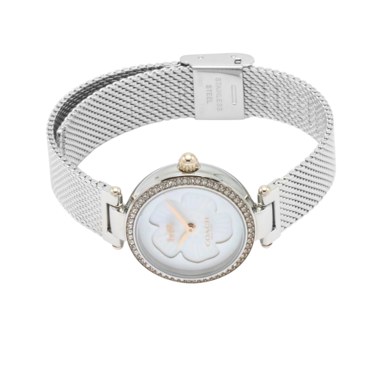 [READY STOCK] COACH MINI PARK FLOWER WHITE MOTHER OF PEARL DIAL SILVER MESH LADIES WATCH 14503510