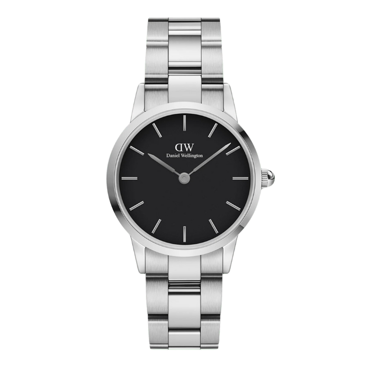 [READY STOCK] DANIEL WELLINGTON ICONIC LINK SILVER BLACK DIAL SILVER STEEL LADIES WATCH