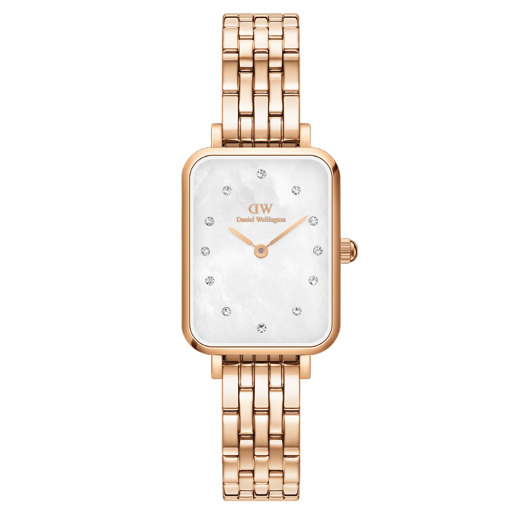[READY STOCK] DANIEL WELLINGTON QUADRO LUMINE 5-LINK MELROSE WHITE MOTHER OF PEARL DIAL ROSEGOLD STEEL LADIES WATCH