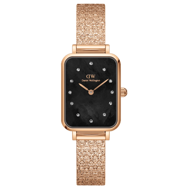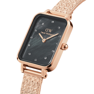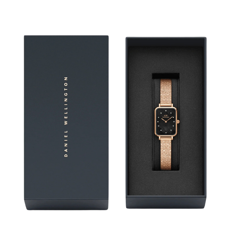 [READY STOCK] DANIEL WELLINGTON QUADRO LUMINE PRESSED PIANO BLACK MOTHER OF PEARL DIAL ROSEGOLD MESH LADIES WATCH