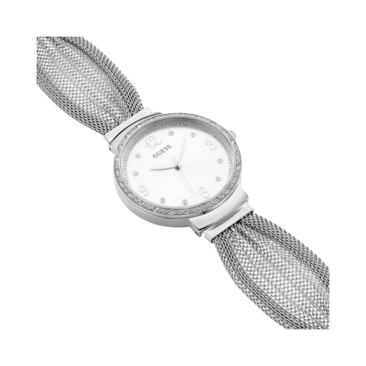 [READY STOCK] GUESS CHIFFON SILVER DIAL SILVER BELT STEEL LADIES WATCH W1083L1