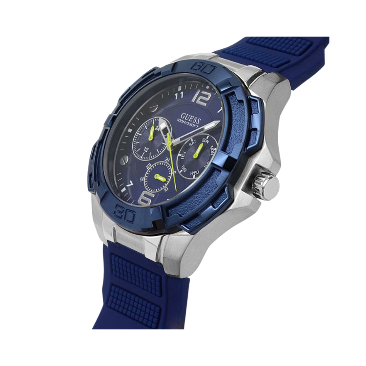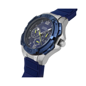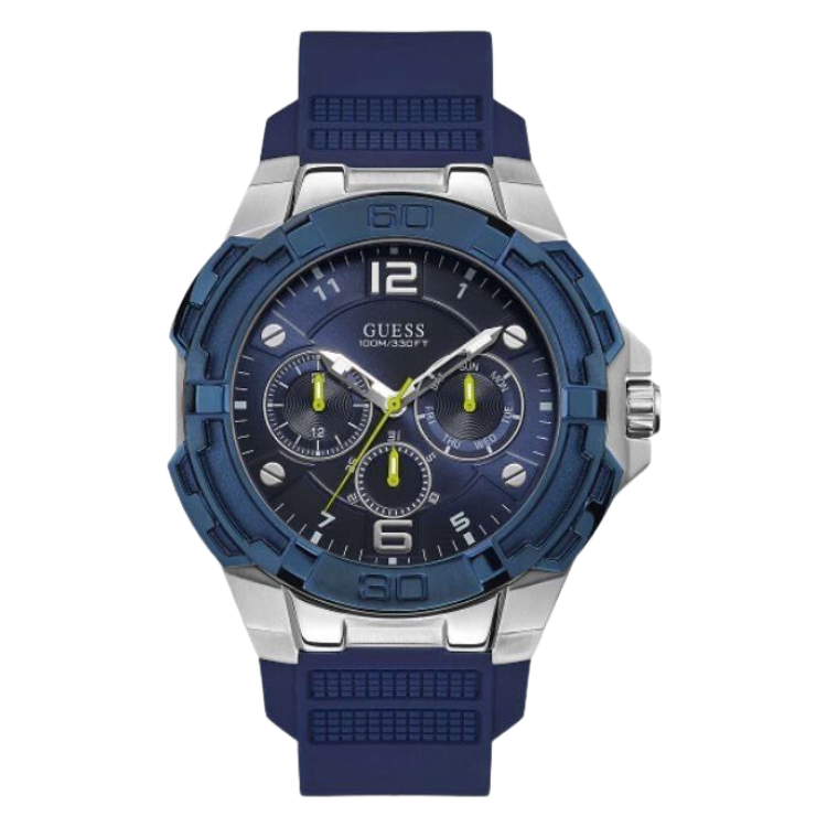 [READY STOCK] GUESS GENESIS BLUE DIAL SILVER CASE SILICONE MENS WATCH W1254G1