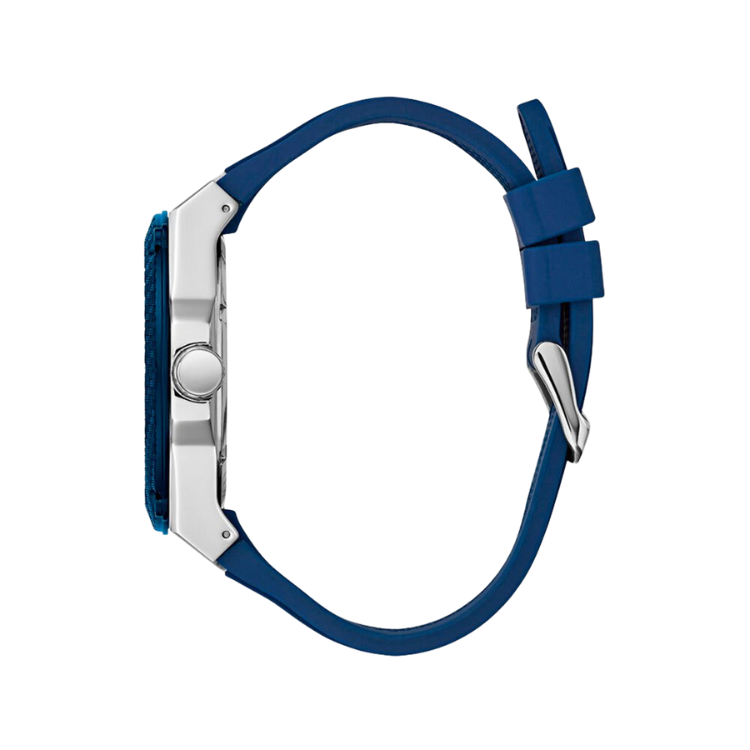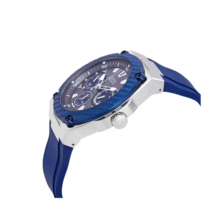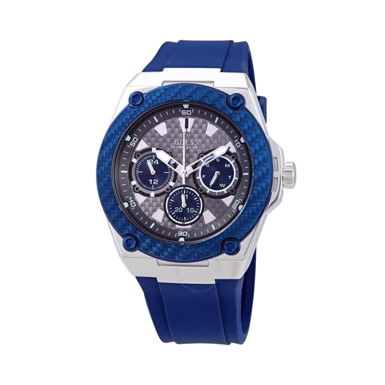 [READY STOCK] GUESS LEGACY BLACK DIAL SILVER CASE BLUE SILICONE MENS WATCH W1049G1
