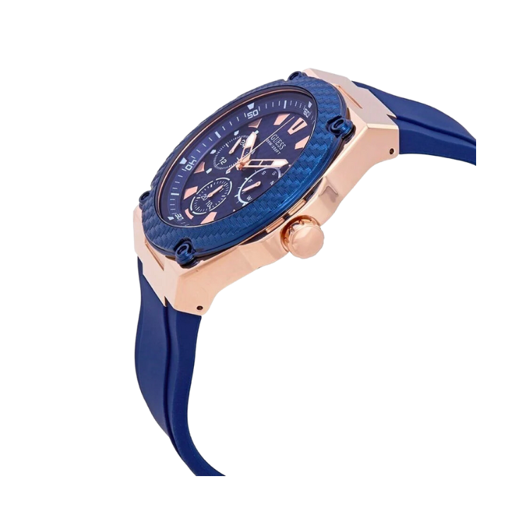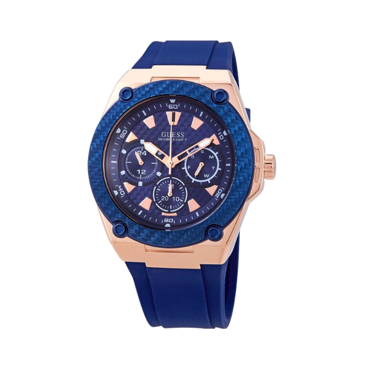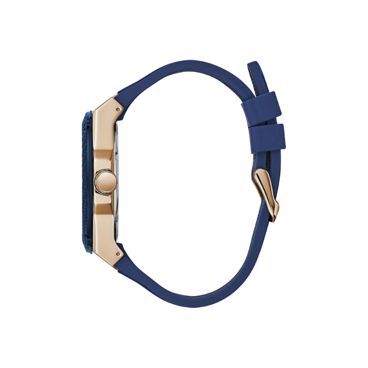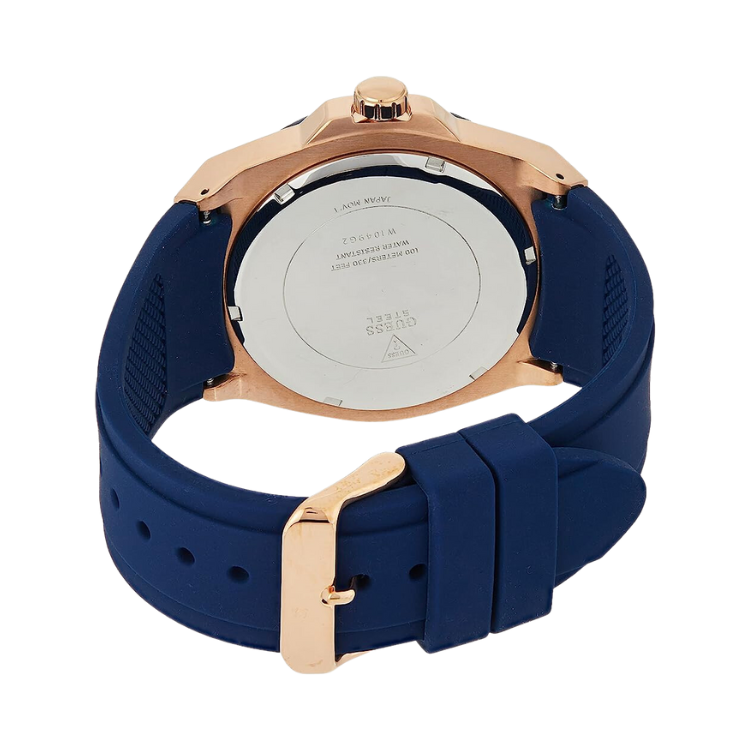 [READY STOCK] GUESS LEGACY BLUE DIAL ROSEGOLD CASE BLUE SILICONE MENS WATCH W1049G2