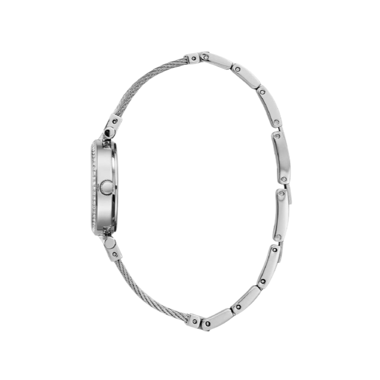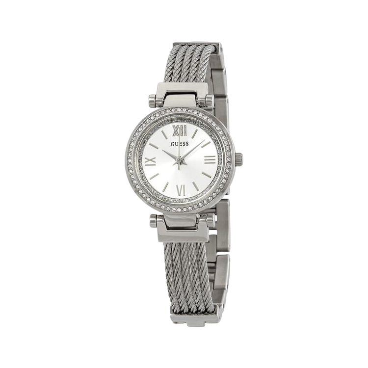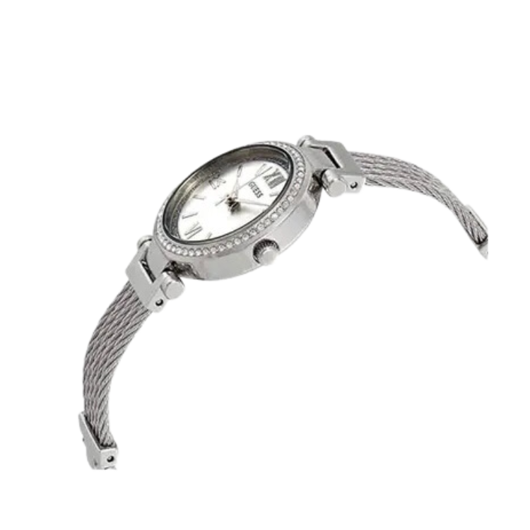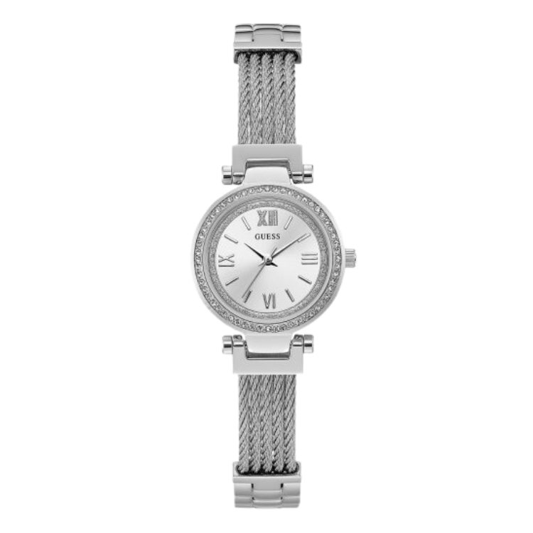 [READY STOCK] GUESS MINI SOHO SILVER DIAL TONE WIRE BRACELET LADIES WATCH W1009L1