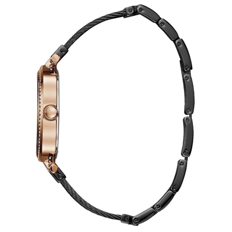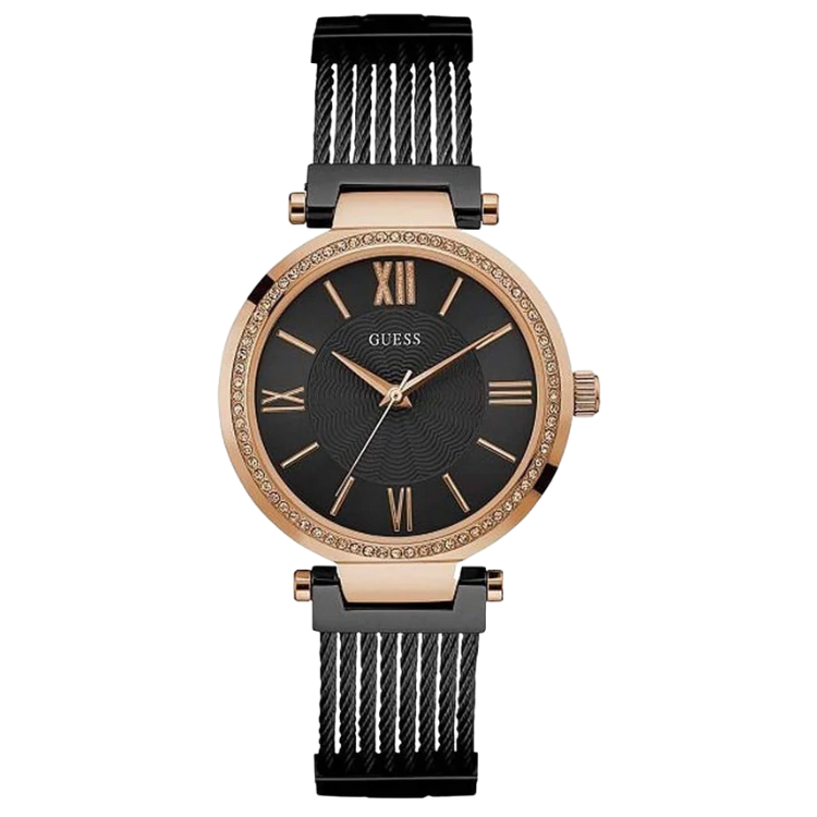 [READY STOCK] GUESS SOHO BLACK DIAL ROSEGOLD CASE BLACK WIRE BRACELET LADIES WATCH W0638L5