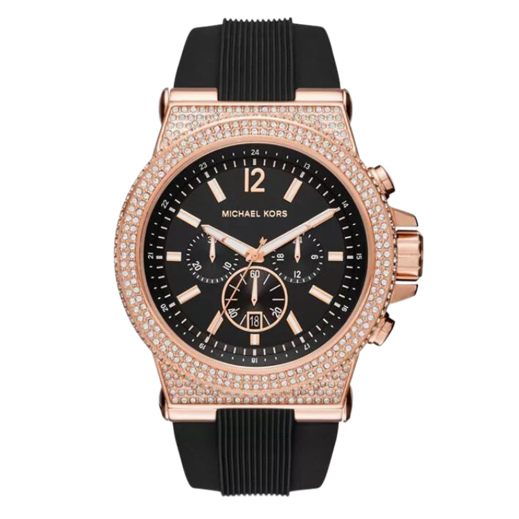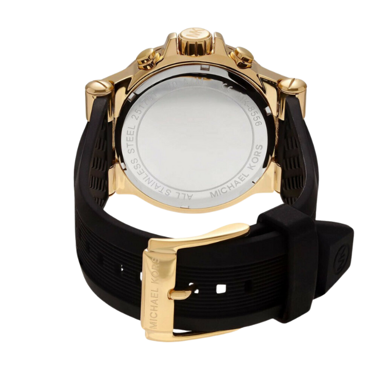 ![[READY STOCK] MICHAEL KORS DYLAN CRYSTAL BLACK DIAL GOLD CASE SILICONE STRAP MENS WATCH MK8556 - Image 5](https://ahjwatch.com/wp-content/uploads/2023/12/4-2.png)