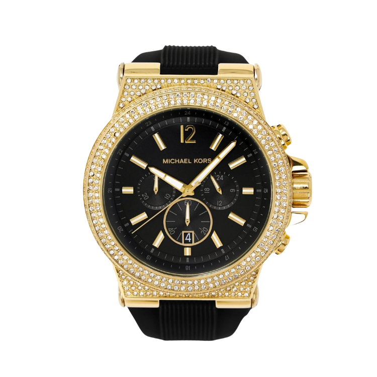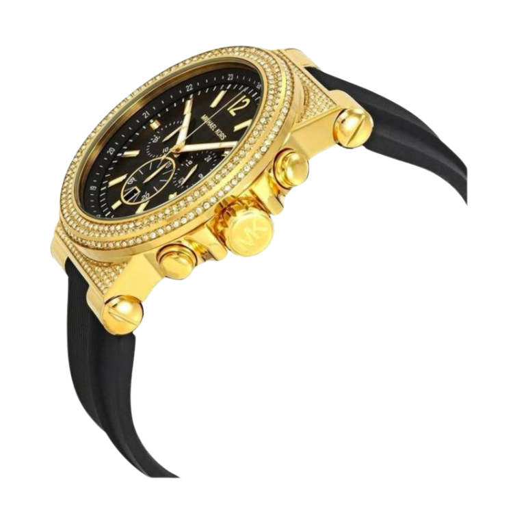 ![[READY STOCK] MICHAEL KORS DYLAN CRYSTAL BLACK DIAL GOLD CASE SILICONE STRAP MENS WATCH MK8556 - Image 4](https://ahjwatch.com/wp-content/uploads/2023/12/6.png)