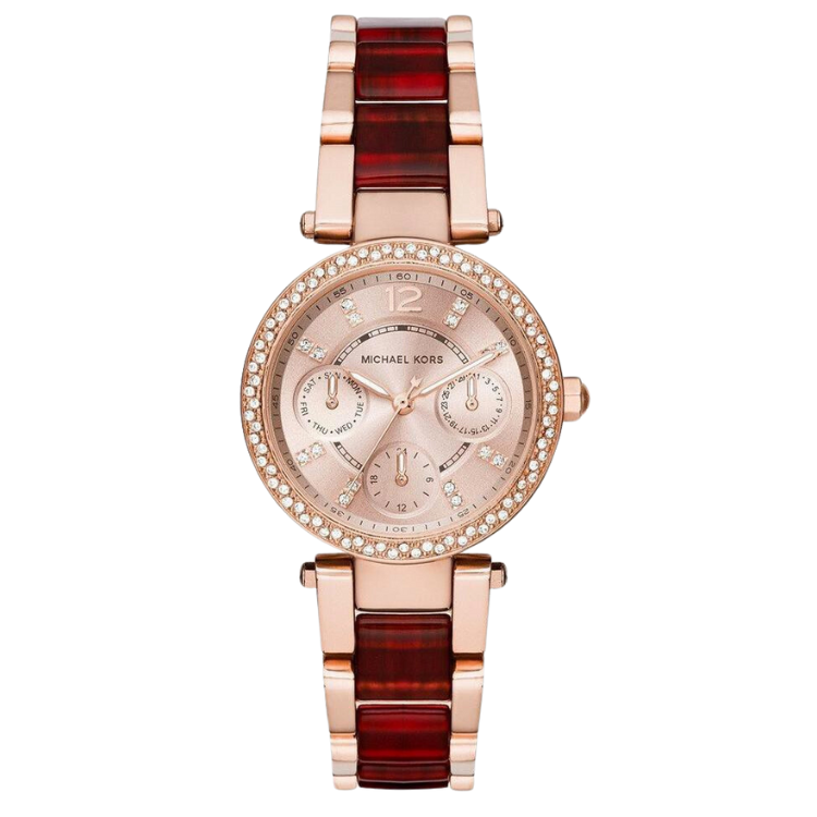 ![[READY STOCK] MICHAEL KORS MINI PARKER CHRONOGRAPH ROSE DIAL RED/ROSEGOLD ACETATE LADIES WATCH MK6239 - Image 3](https://ahjwatch.com/wp-content/uploads/2023/04/32-3.png)