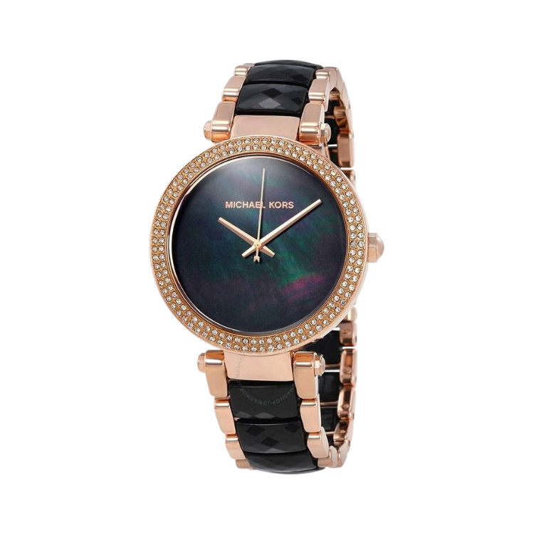 ![[READY STOCK] MICHAEL KORS PARKER BLACK DIAL BLACK/ROSEGOLD ACETATE LADIES WATCH MK6414 - Image 4](https://ahjwatch.com/wp-content/uploads/2023/04/10-10.png)