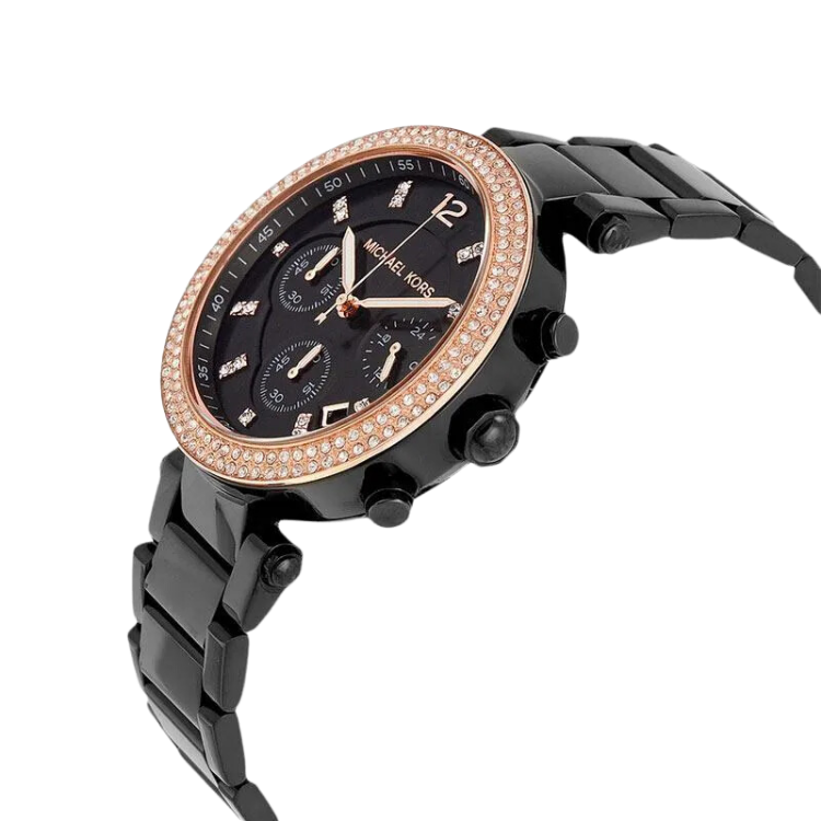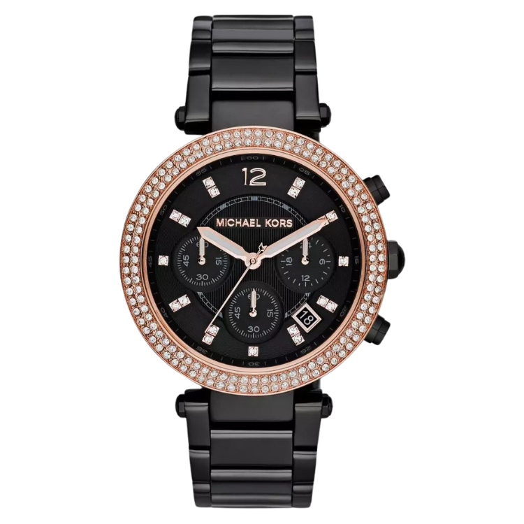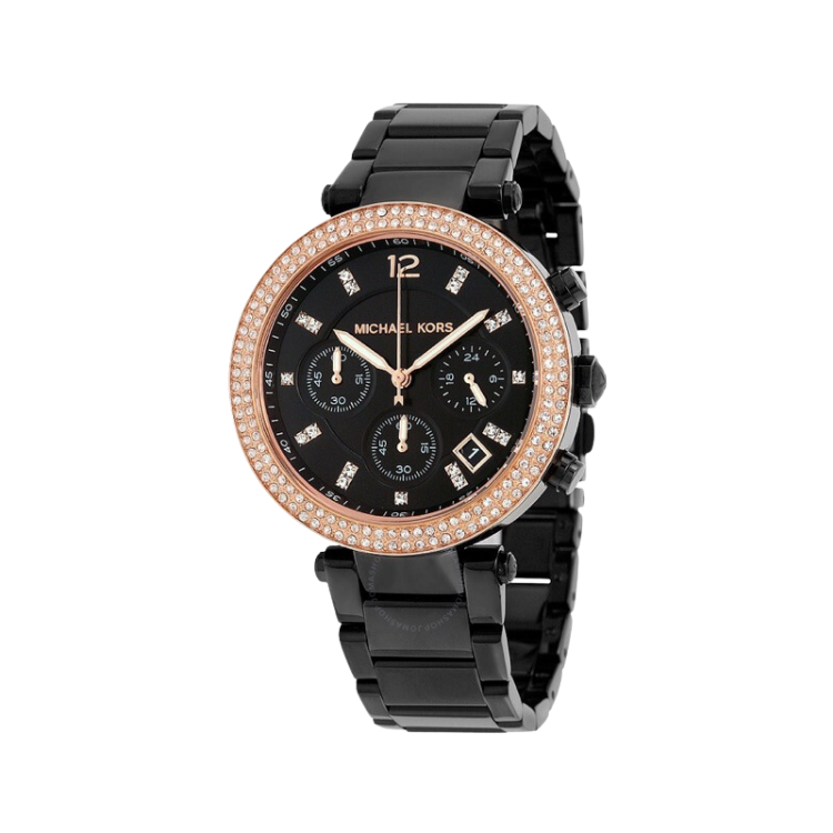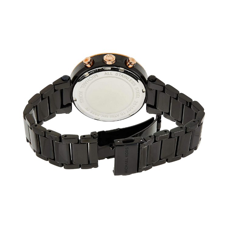 ![[READY STOCK] MICHAEL KORS PARKER CHRONOGRAPH BLACK DIAL ROSEGOLD CASE ACETATE LADIES WATCH MK5885 - Image 3](https://ahjwatch.com/wp-content/uploads/2023/04/40-2.png)