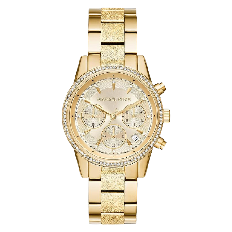 ![[READY STOCK] MICHAEL KORS RITZ CHRONOGRAPH GOLD DIAL CRYSTAL ACETATE LADIES WATCH MK6597 - Image 4](https://ahjwatch.com/wp-content/uploads/2023/06/4-10.png)