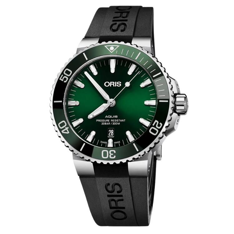 [READY STOCK] ORIS AQUIS DATE AUTOMATIC GREEN DIAL BLACK SILICONE MENS WATCH 7730 4157-07